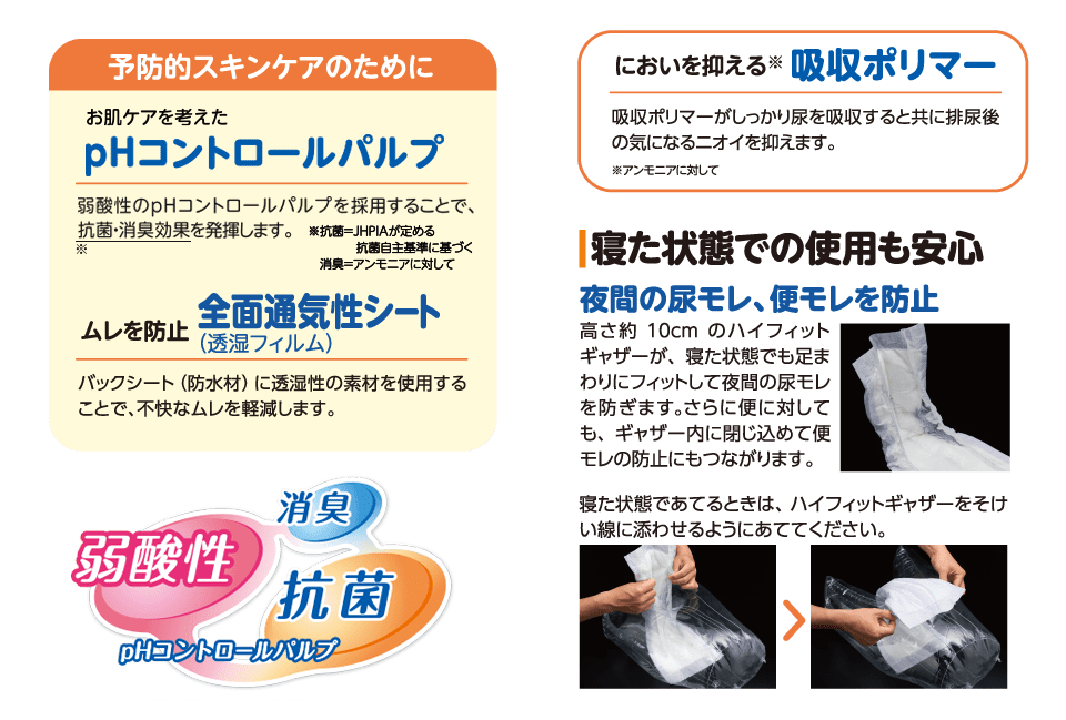 - 気になる臭いも安心、吸収ポリマー
