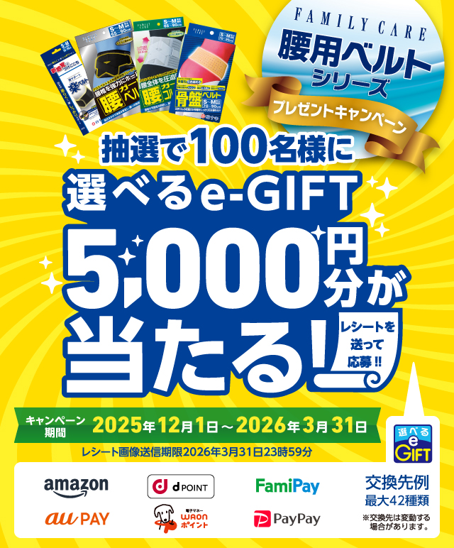 ファミリーケア 腰用ベルトシリーズ プレゼントキャンペーンを開始しました。